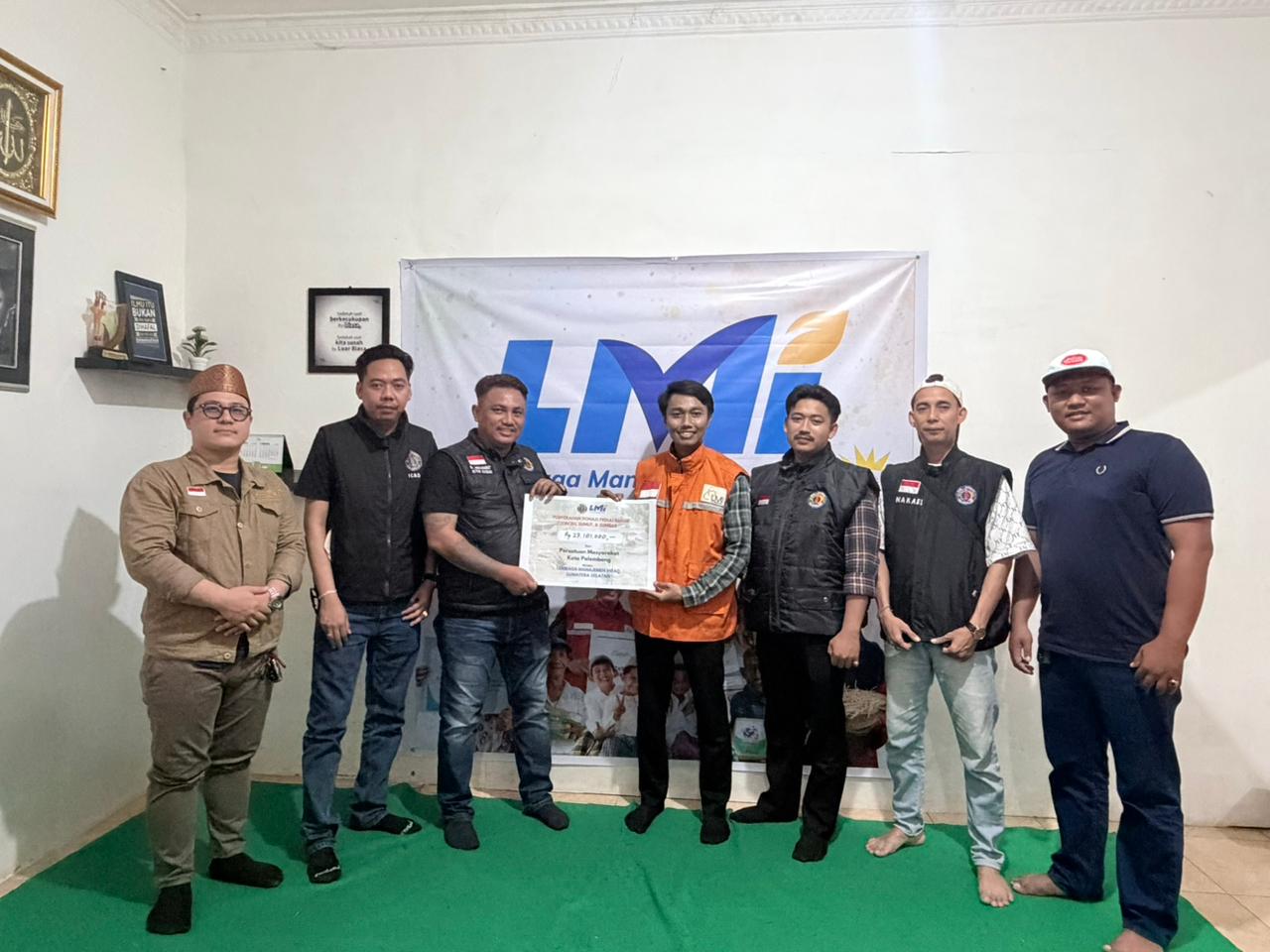 Bantuan pun diserahkan melalui Lembaga Manajemen Infaq (LMI) Sumsel, yang kantor ny dilokasi dipakjo wayhitam Palembang.