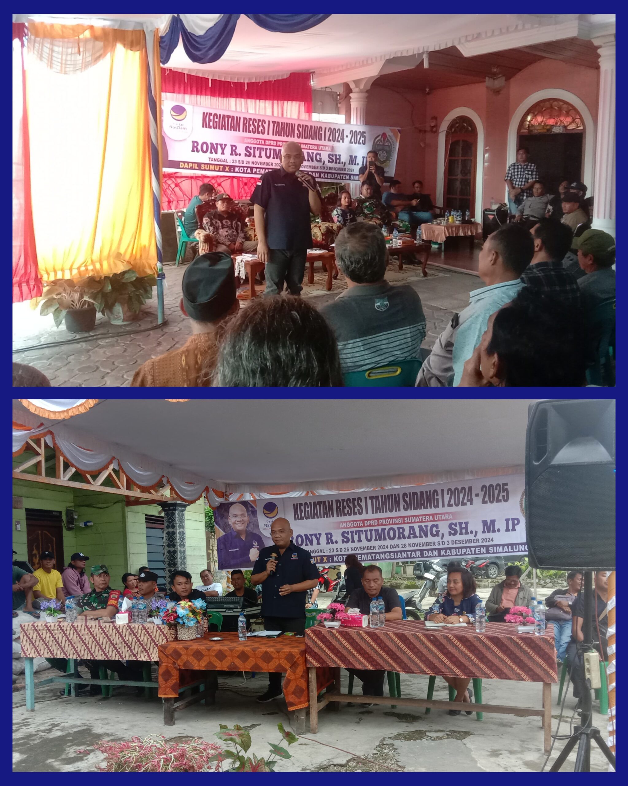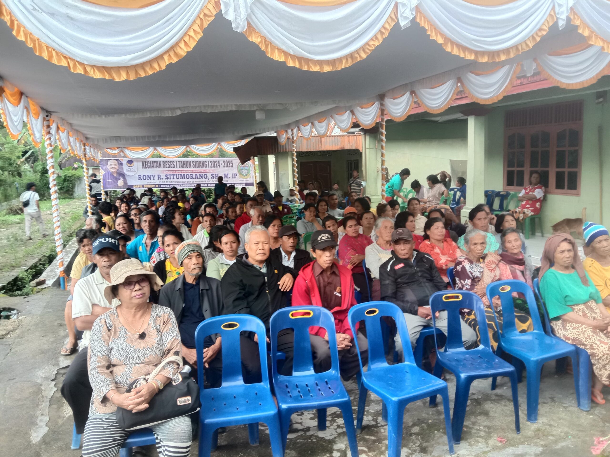 Simalungun-Sumut-www.kompaspemburukeadilan.com- Anggota Dewan Perwakilan Provinsi Sumatra Utara(DPRD Sumut) dari Fraksi Nasdem,Rony R.Situmorang SH,M.IP.menggelar reses 1 tahun sidang 1 2024 – 2025 dengan masyarakat kelurahan Sarimatondang dan Nagori (Desa) Tiga Bolon Kecamatan Sidamanik Kabupaten Simalungun,jumat (29/11/2024).