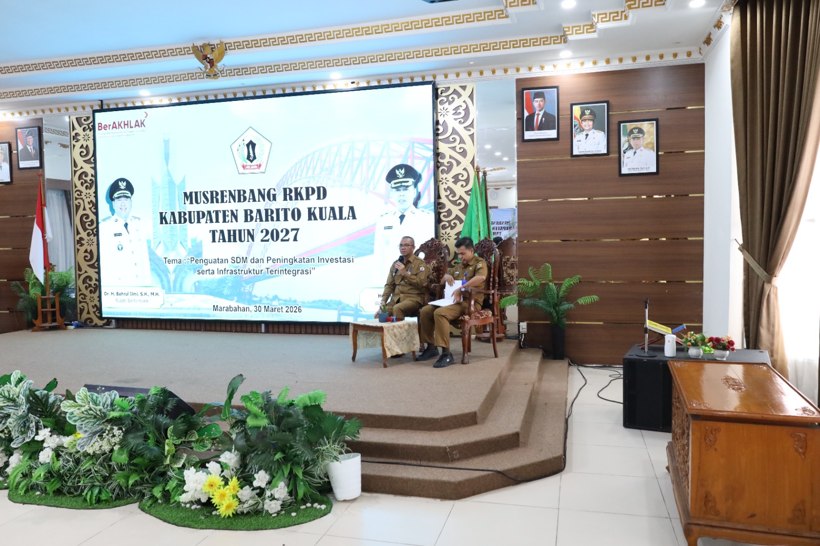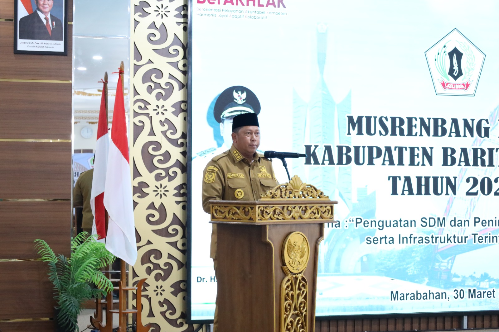 MARABAHAN, kompaspemburukeadilan.com – Bupati Barito Kuala, H. Bahrul Ilmi, secara resmi membuka Musyawarah Perencanaan Pembangunan (Musrenbang) dalam rangka penyusunan Rencana Kerja Pemerintah Daerah (RKPD) Kabupaten Barito Kuala Tahun 2027. Mengusung tema “Penguatan SDM dan Peningkatan Investasi serta Infrastruktur Terintegrasi” Musrenbang berlangsung di Aula Selidah, Senin (30/03).