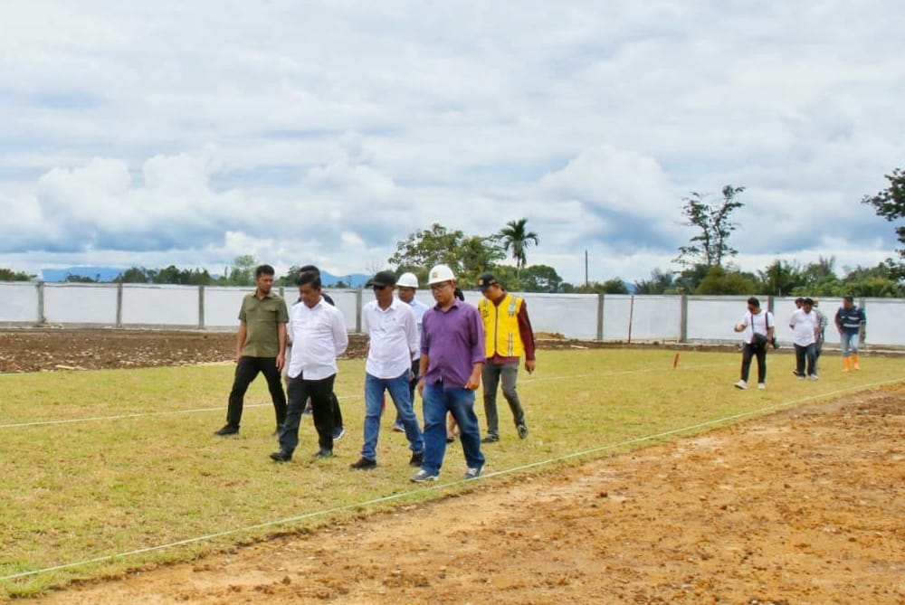 Bupati Radiapoh Meninjau Progres Pembangunan Stadion Mini Pematang Raya