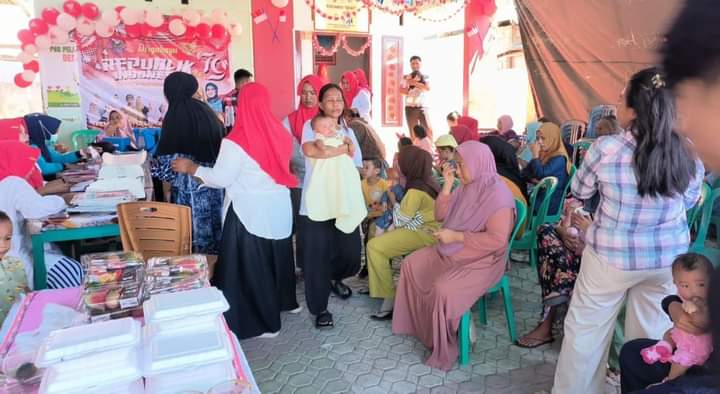 Selain pemeriksaan kesehatan, kegiatan ini juga diisi dengan pemberian makanan tambahan (PMT) untuk bayi dan ibu hamil.