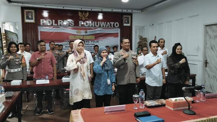 KompasPemburuKeadilan.Com, POHUWATO – Kepolisian Resort (Polres) Kabupaten Pohuwato, menerima kunjungan dari Tim Puslitbang Polri yang di dampingi oleh tim utama Badan Riset Inovasi Nasional (BRIN), yang bertempat di Aula Tribrata Polres Pohuwato, rabu (09/10/2024).