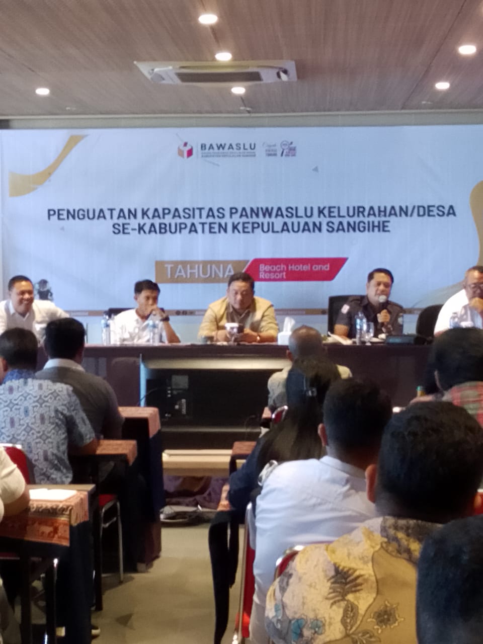 Pada tanggal 26 Agustus 2024 di laksanakan acara bimbingan teknik (Bimtek) yang di selenggarakan oleh Bawaslu Kabupaten Kepulauan Sangihe untuk memperkuat sistem pengawasan melekat dan Memperkuat Kapasitas untuk Panwas tingkat Kelurahan/Desa