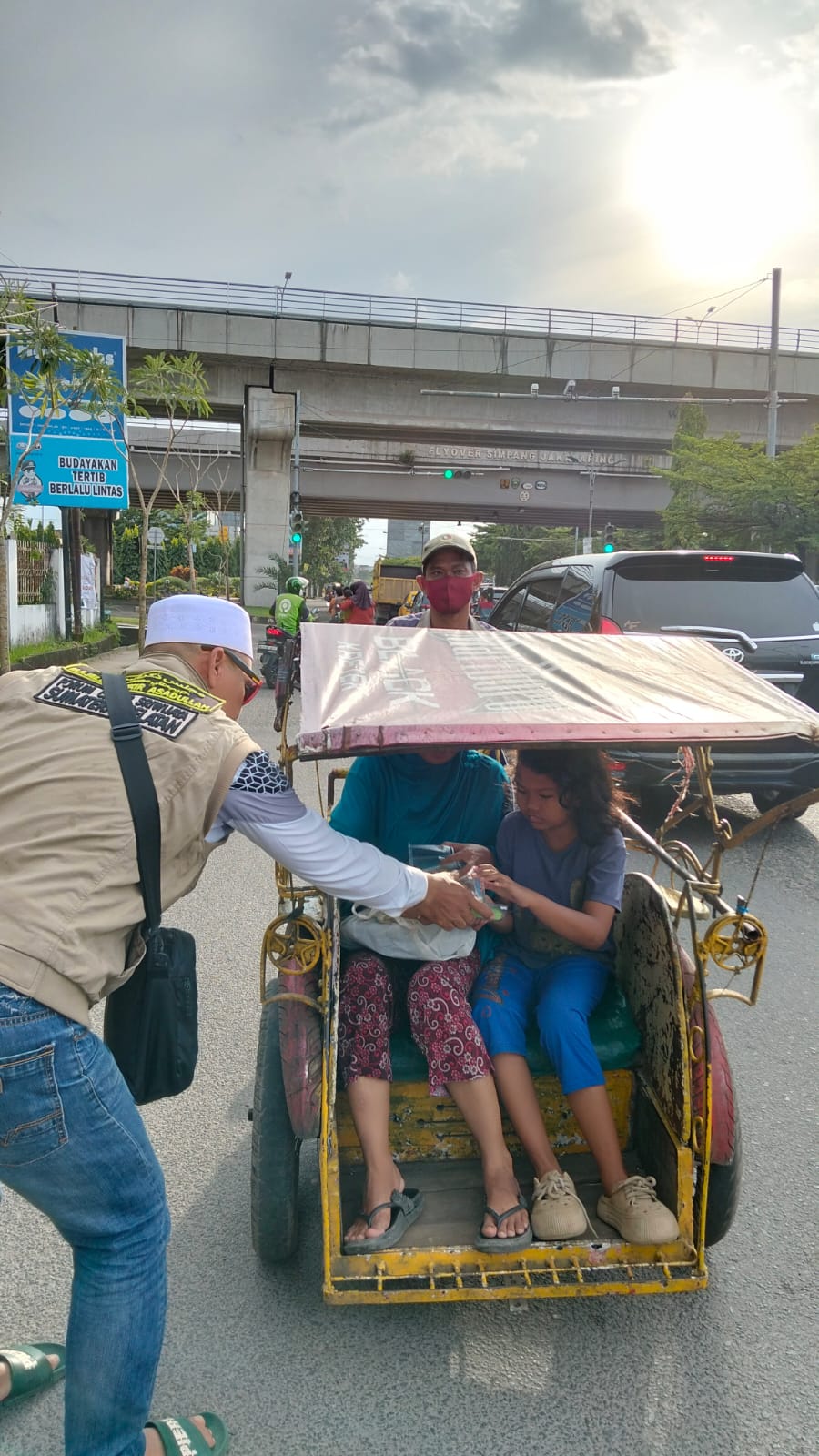 Takjil pun dibagikan disepanjang jalan umum, khususnya pengendara Gojeck, Sopir Angkot, maupun pejalan kaki yang sedang melintas di lokasi tempat pembagian takjil tersebut