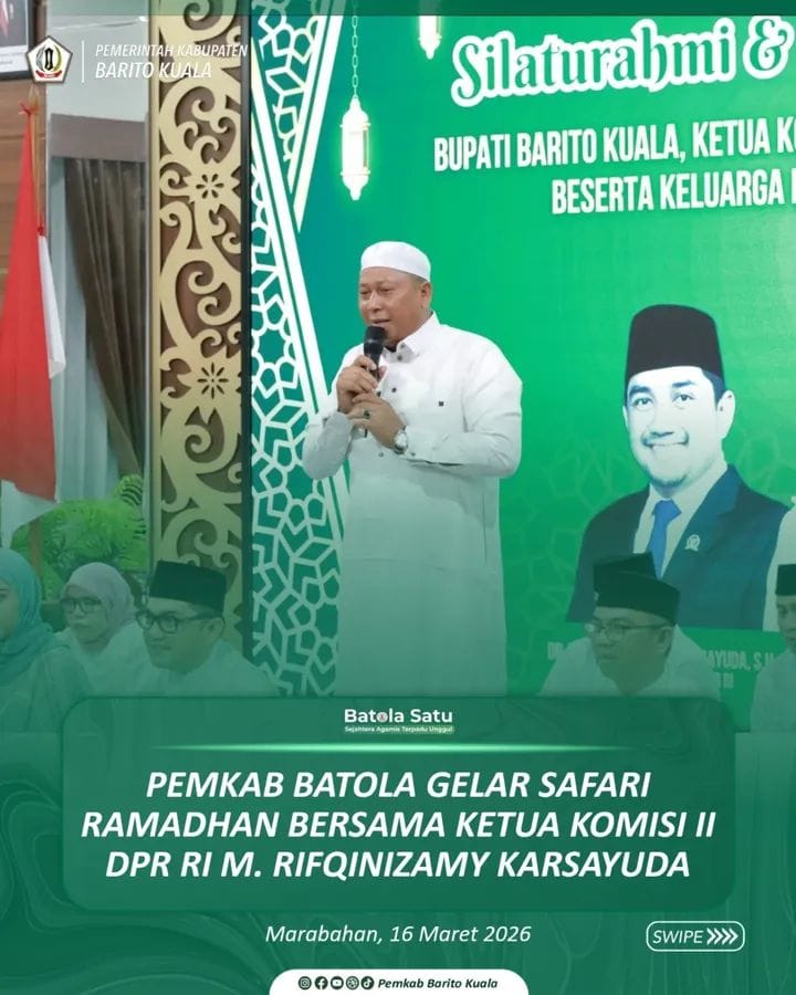 “Kehadiran beliau merupakan kehormatan luar biasa bagi kami. Beliau adalah sosok di DPR RI yang selalu memberikan dukungan nyata bagi pembangunan di Batola,” ujar Bahrul. Ia juga mengajak seluruh hadirin untuk mendoakan agar di penghujung Ramadhan menjelang Idul Fitri 1447 Hijriah ini, seluruh masyarakat Batola senantiasa diberikan kesehatan dan keberkahan.