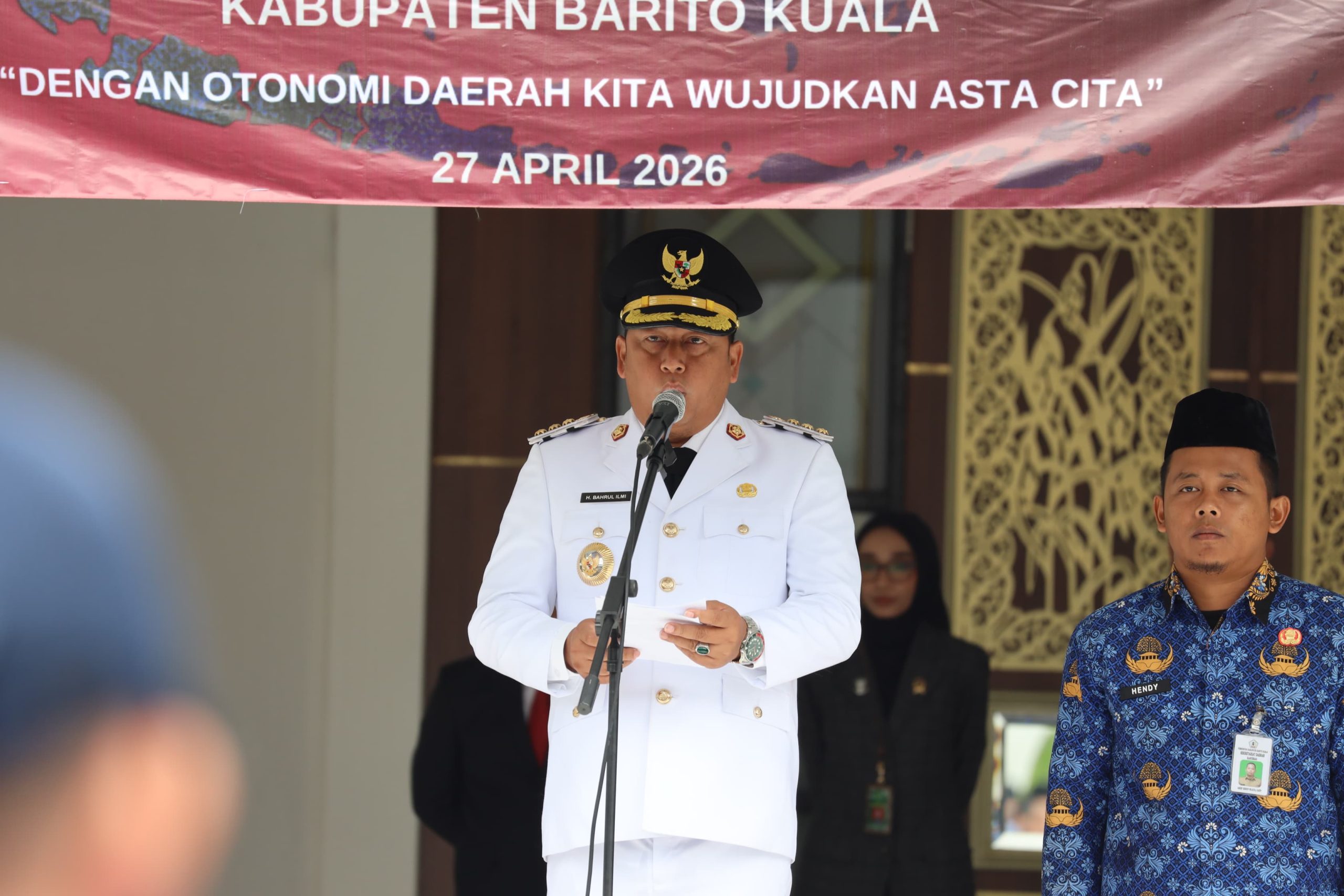 MARABAHAN, kompaspemburukeadilan.com – Pemerintah Kabupaten Barito Kuala (Barito Kuala) menggelar Upacara Peringatan Hari Otonomi Daerah (Otoda) ke-XXX tahun 2026. Kegiatan yang berlangsung khidmat ini dilaksanakan di halaman Kantor Bupati Barito Kuala pada Senin pagi (27/04).